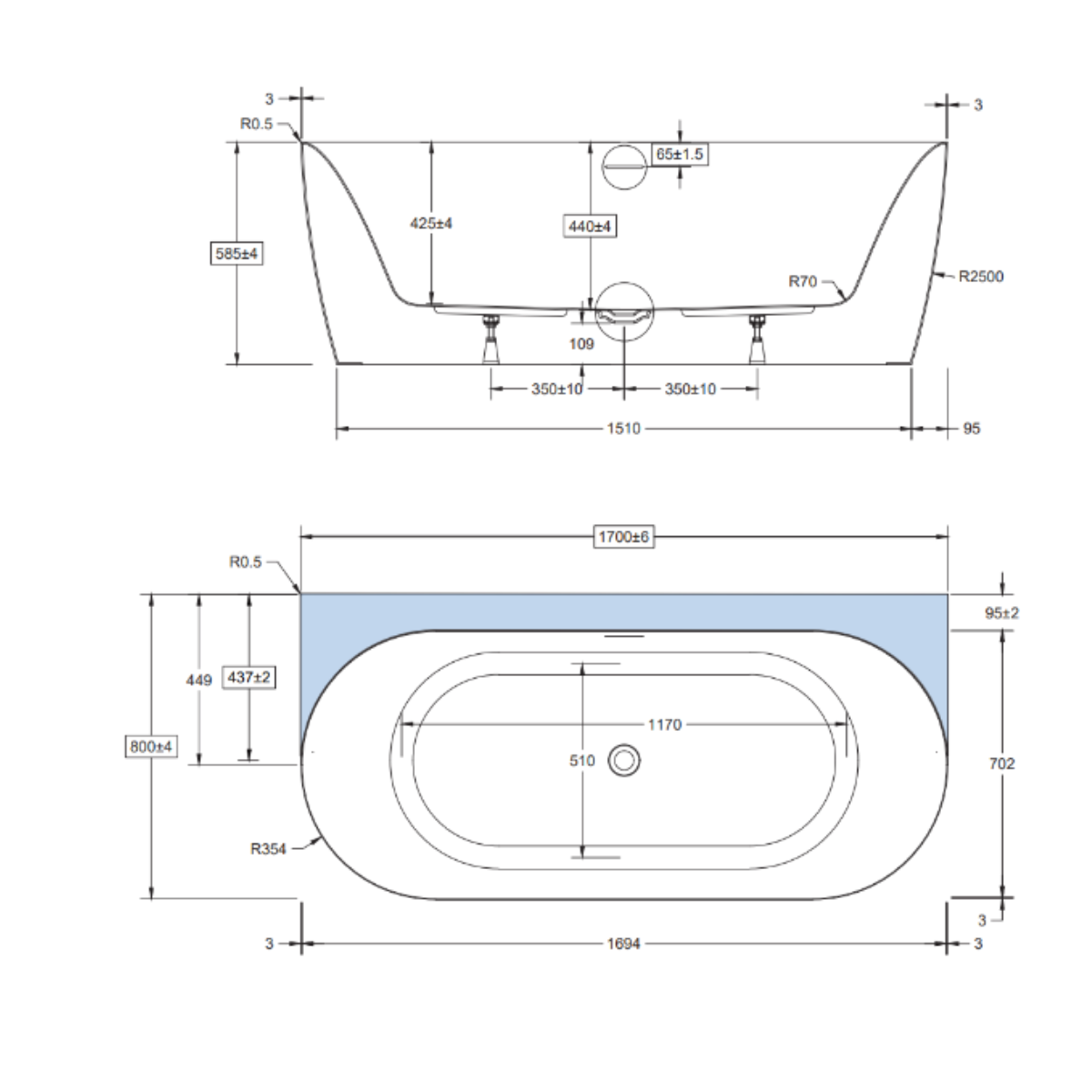 - Materjal: kõrgekvaliteediline sanitaarakrüül topeltseina konstruktsiooniga
