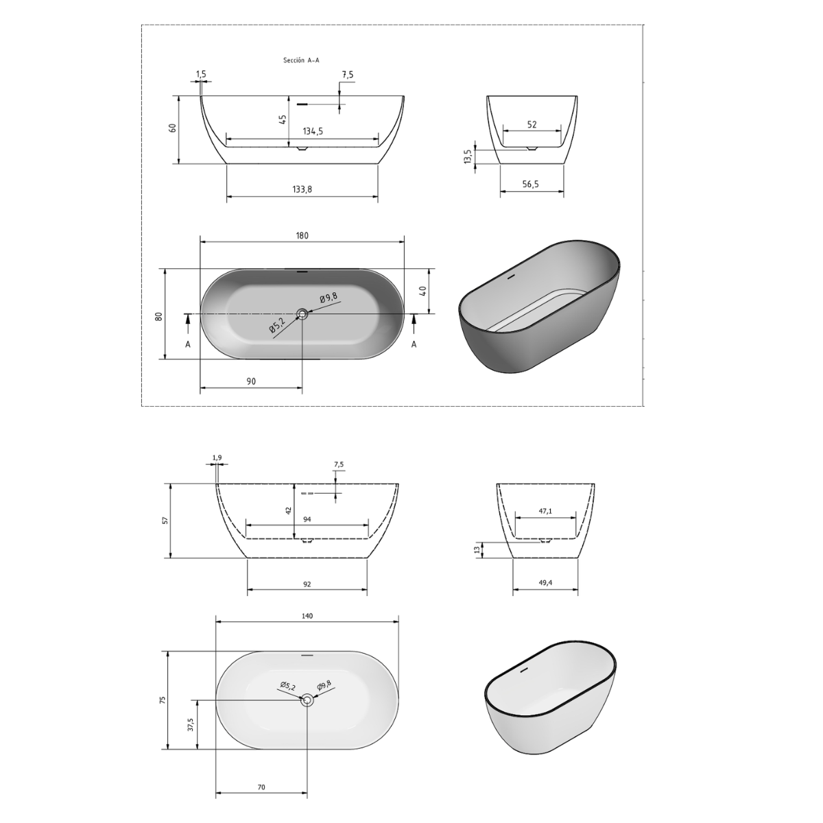 Eraldiseisev akrüülvann on seest ja väljast matt valge. Vanni välisküljed on värvitavad: standard – ja metalliktoonides.