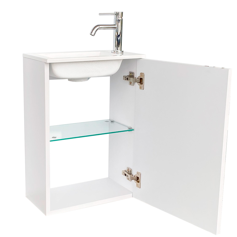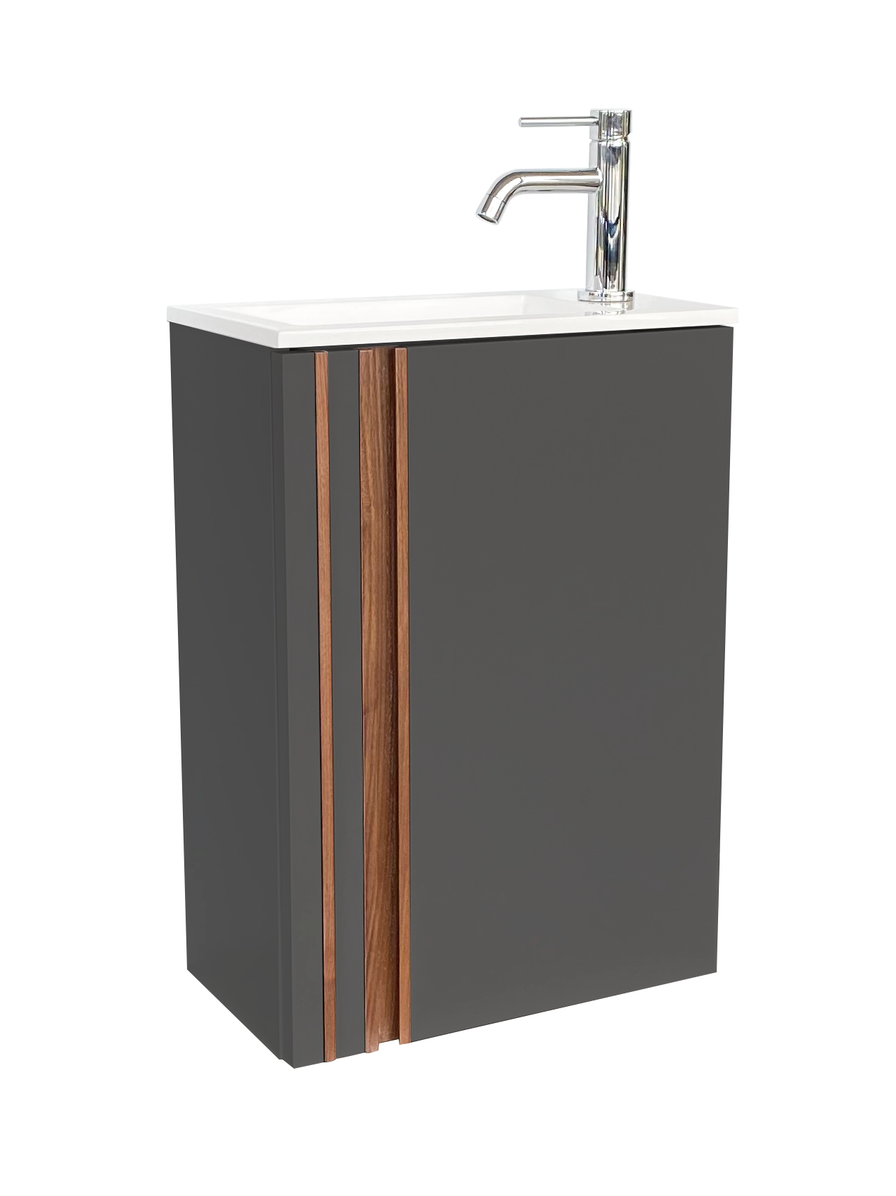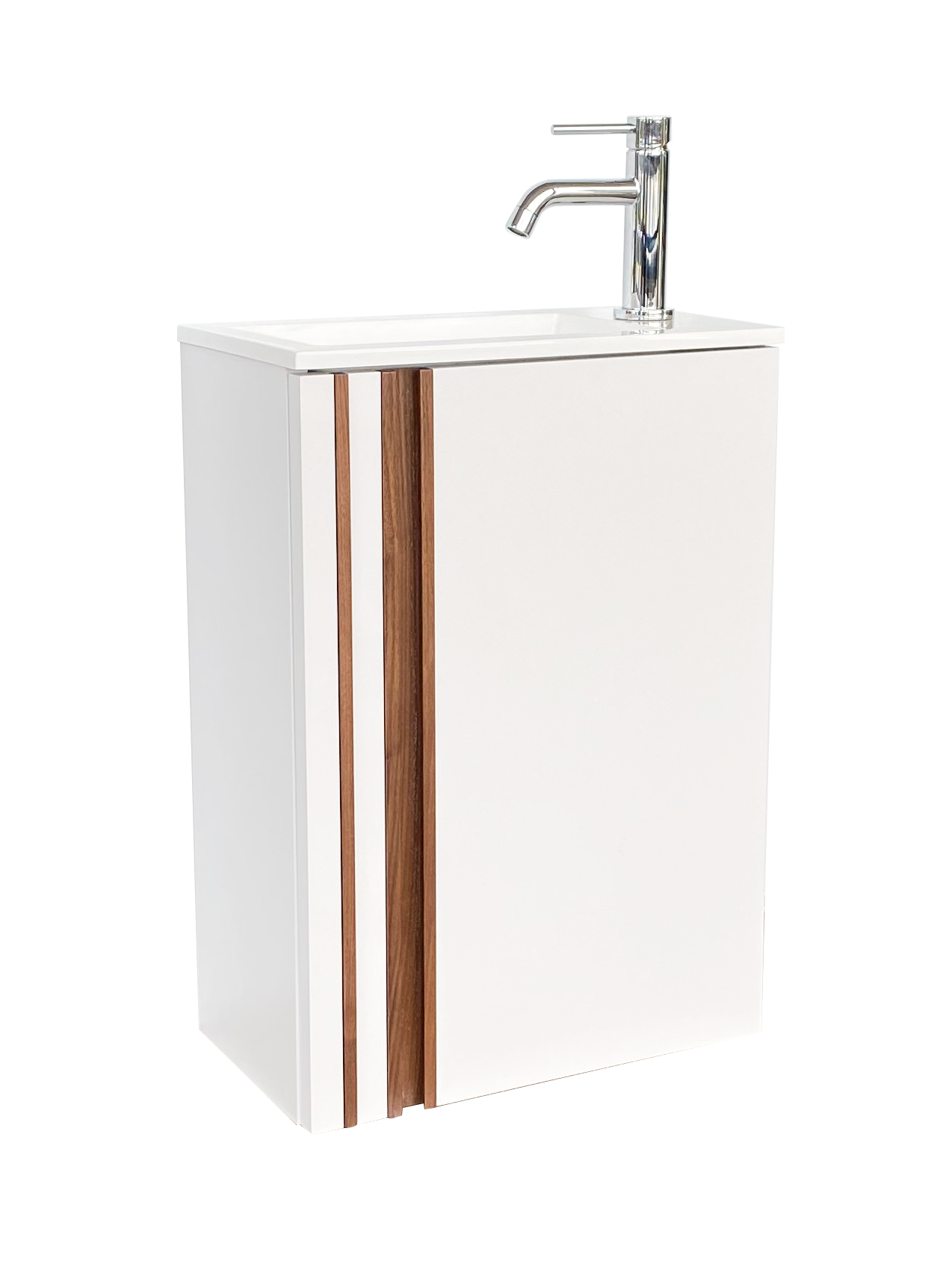 Seinapealne minivalamukapp on saadaval kahes värvitud mdf toonis ning kobineerida on võimalik musta või valge valamuga.